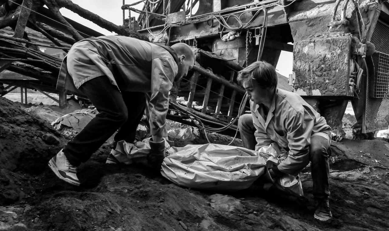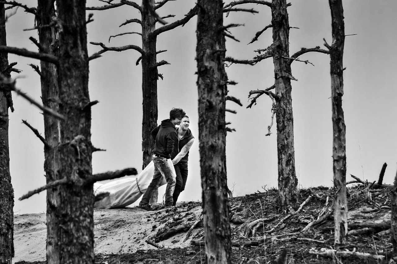 Two laconic boys are busy with corpses when an angel appears.